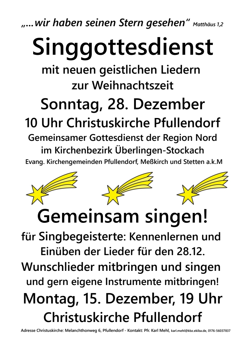 Sonntag, 28. Dezember 10 Uhr Christuskirche Pfullendorf
