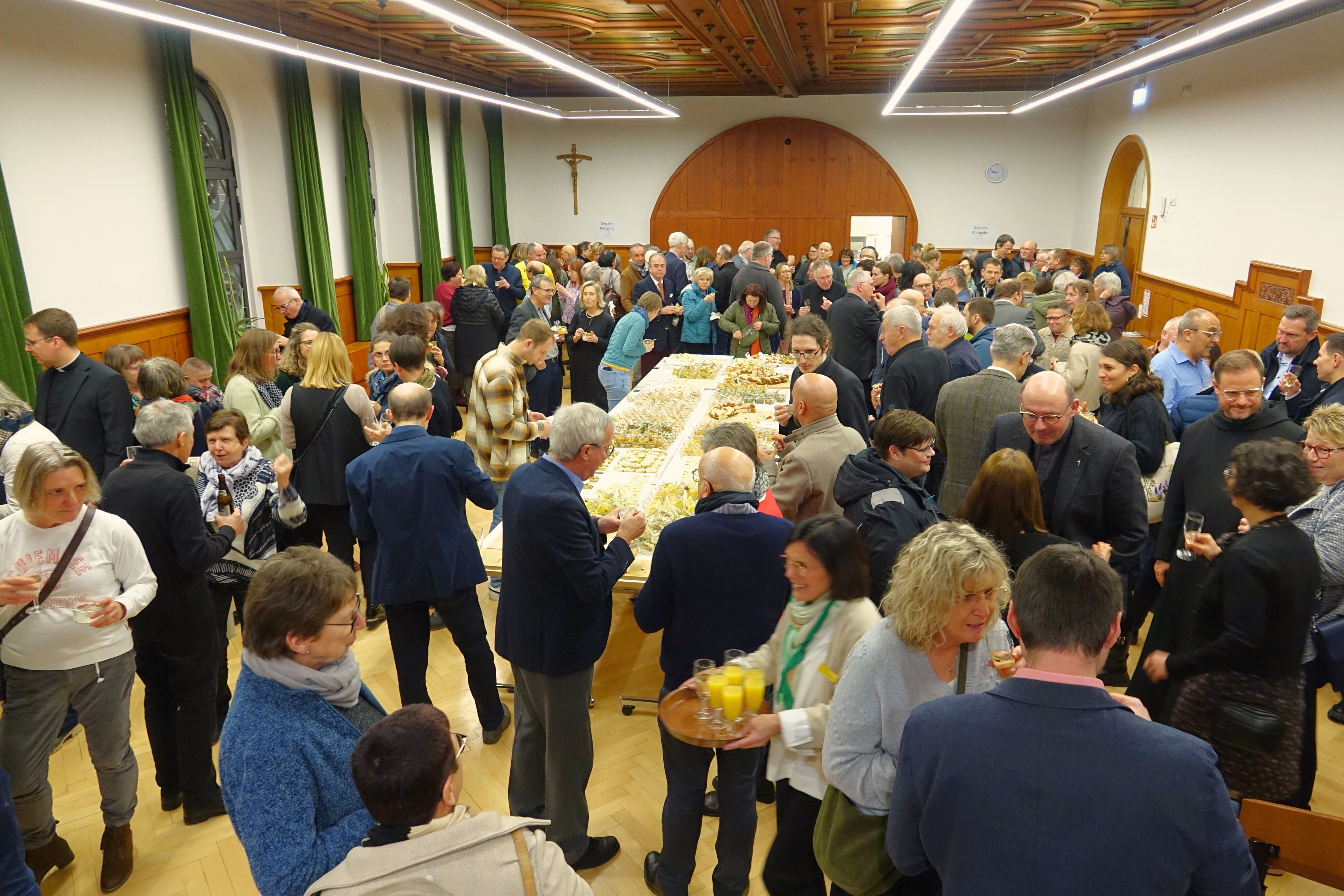 Nach dem Gottesdienst folgten Grußworte. Landrätin Stefanie Bürkle sowie die Co-Dekanin des Evangelischen Kirchenbezirks Balingen und Sigmaringer Pfarrerin Dorothee Sauer betonten in ihren Ansprachen die Bedeutung der ökumenischen Zusammenarbeit und das Engagement der Kirche für das gesellschaftliche Leben in der Region. Beide betonten, dass Veränderungen nicht einfach, aber ein notwendiger Schritt sind, um in Bewegung zu bleiben und den Glauben - unter den aktuellen gesellschaftlichen Bedingungen und Herausforderungen - weiterzutragen. Landrätin Bürkle rief zur Zuversicht auf, in der Gewissheit, Jesus Christus an unserer Seite zu haben. Sauer stellte heraus, dass sich die evangelische Kirche in ähnlichen Prozessen wie die katholische befinde und die Herausforderung der Organisation und Vernetzung in „weiten Räumen“ den Christen nicht fremd seien, wie bereits das Beispiel urchristlichen Gemeinden im Neuen Testament zeige.